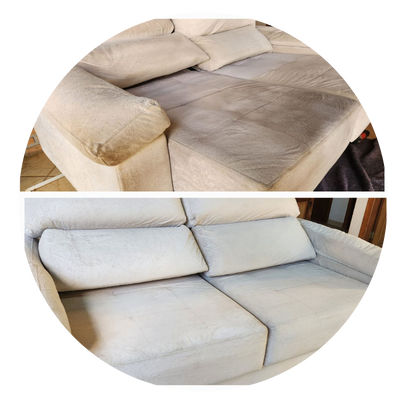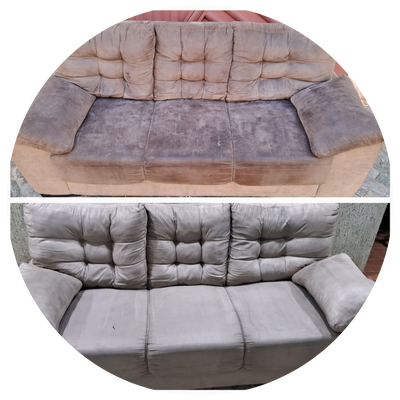 Higienização profissional de estofado de Suede com alta sujidade.